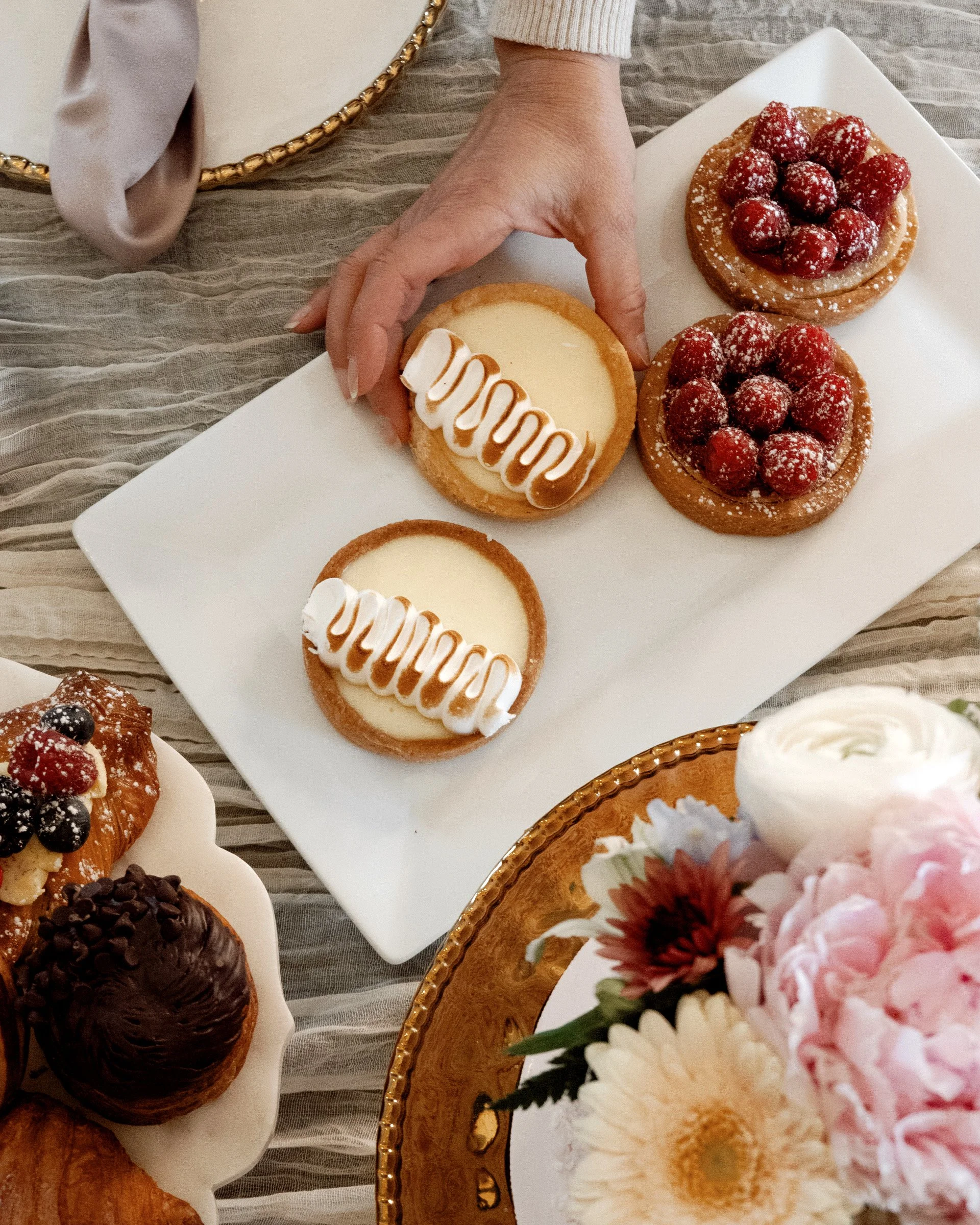 Artisan pastries, gourmet sandwiches, salads to share, and signature desserts—beautifully prepared for every gathering.
